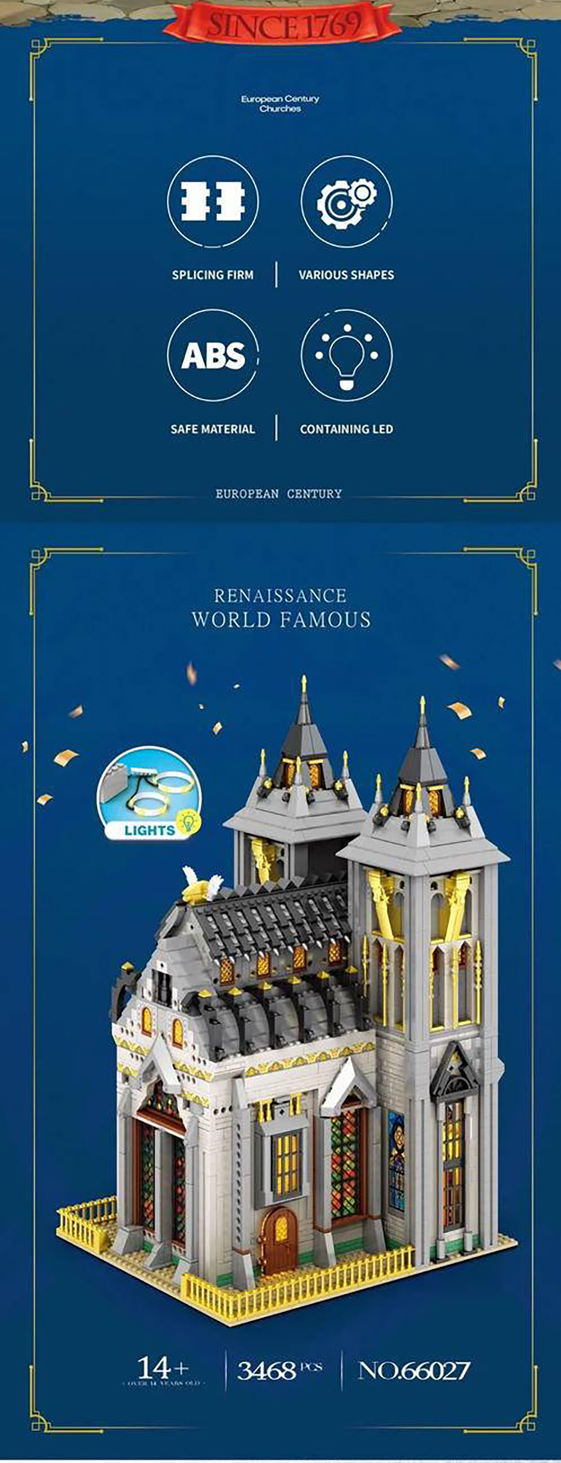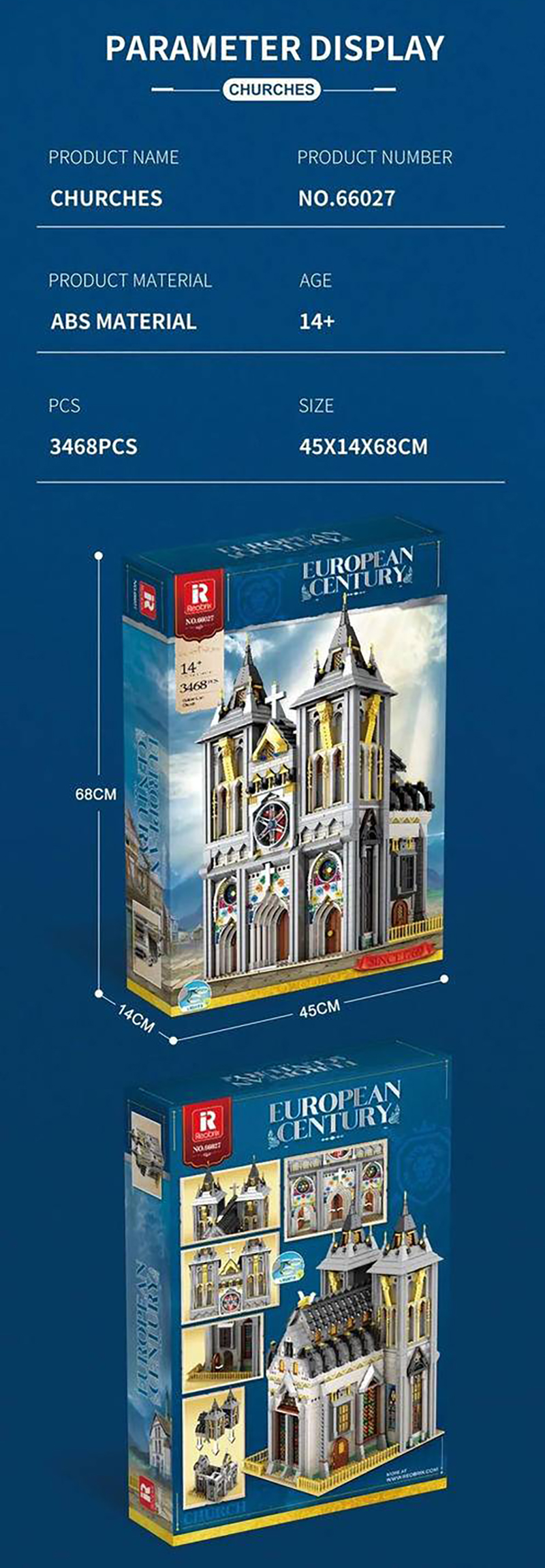 • {Pre-sale available on 25th Nov.} Reobrix 66027 Modular Buildings European Centur Churches Building Blocks 3468pcs Bricks Toys From Europe Delivery.